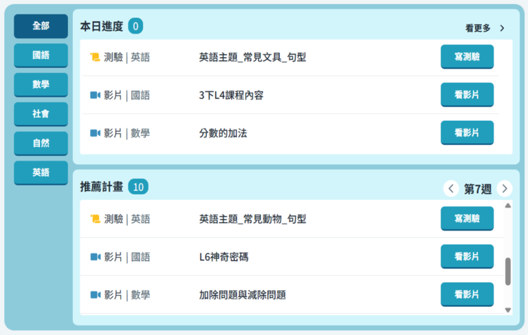 搭配學校進度提前兩週預習,可切換週次進行預複習,讓孩子學得更有信心、不再跟不上。